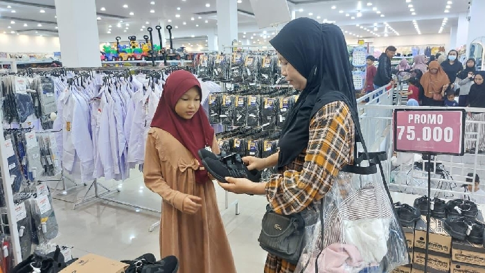 Kebahagiaan juga dirasakan oleh para orang tua penerima manfaat. Siti (45), seorang buruh cuci yang mendampingi anaknya berbelanja, mengaku bersyukur anaknya dapat membeli langsung pakaian Lebaran melalui program tersebut.